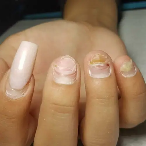 Radio sam, kao što sam rekao, u željezari. To znači da se noge užasno znoje, a vlaga i toplina su ono što gljivice vole. Inače, izdržao sam nekako do tako tužnog stanja da su svi nokti požuteli, postali debeli i grubi na obje noge, pojavio se jak svrbež i neugodan miris. A onda su se počeli jednostavno mrviti i baza noktiju, meso, je bilo otkriveno.