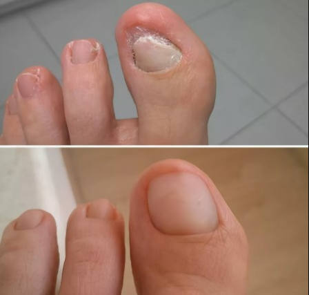 Doslovno sedam dana posle, nokti su počeli izgledati bolje. I nakon 3 nedelje, gljivica se povukla daleko od korena nokta - odrezali smo oboleli nokat odozgo, a novi odozdo izrastao je već zdrav i ružičast.